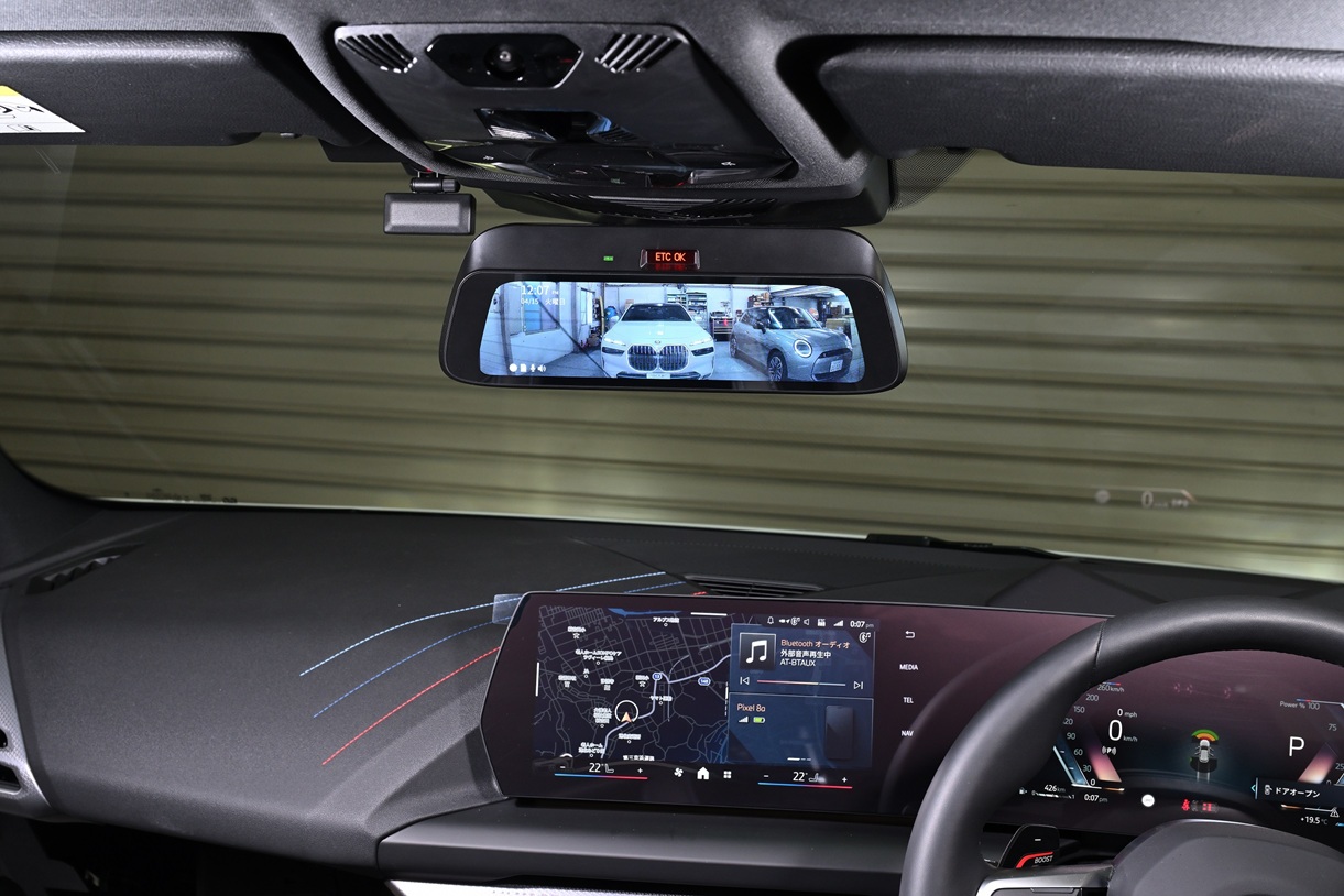 純正ETC内臓ミラーの上から被せるタイプで、フィッティングもスタイルも良い感じデス。
