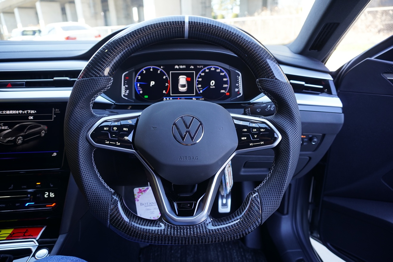 軽いDシェイプで少し太めにした握りは、ステアリング操作性も向上。。。